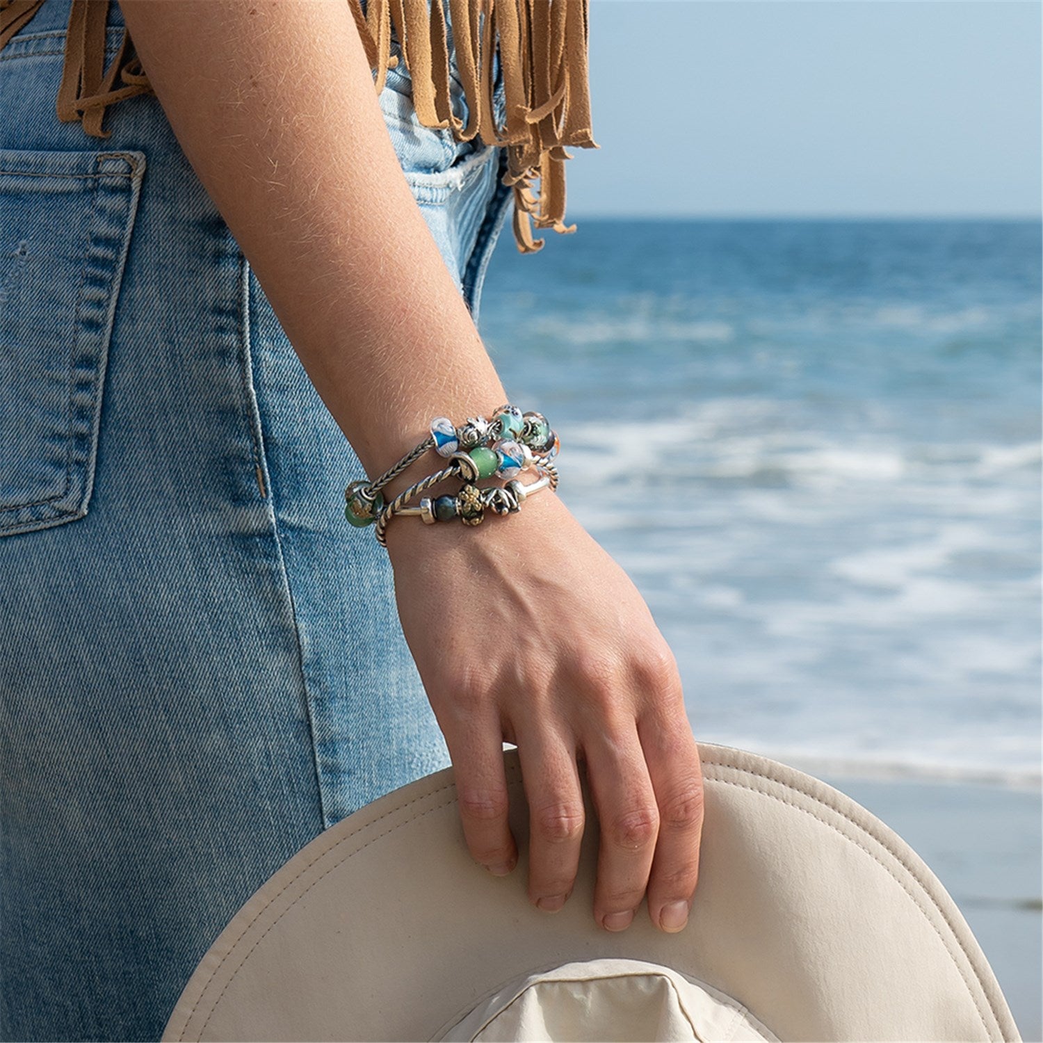 Choose a bracelet size, play with the design by adding different beads until you have the look you desire, and add a clasp to secure the beads.