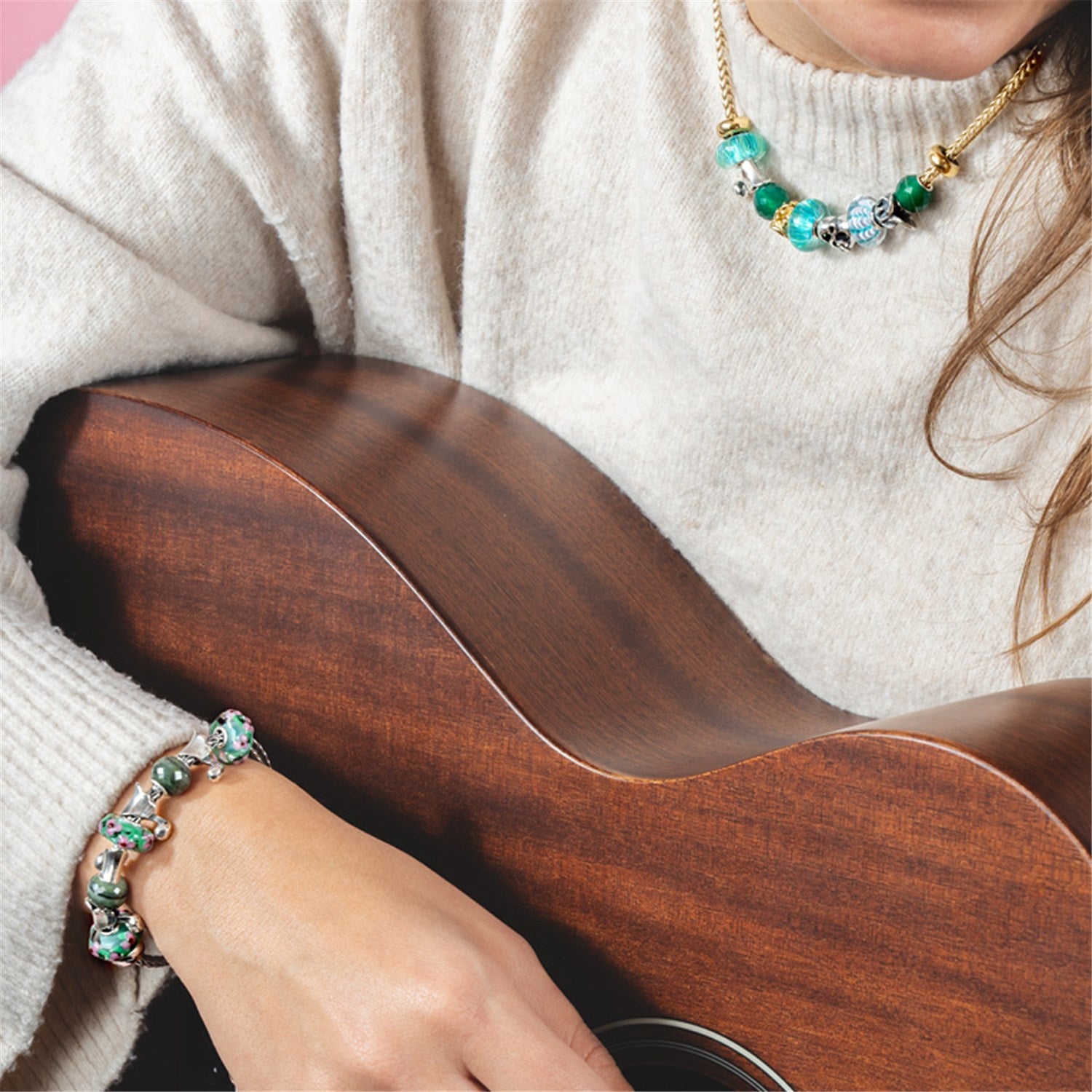 Choose a bracelet size, play with the design by adding different beads until you have the look you desire, and add a clasp to secure the beads.