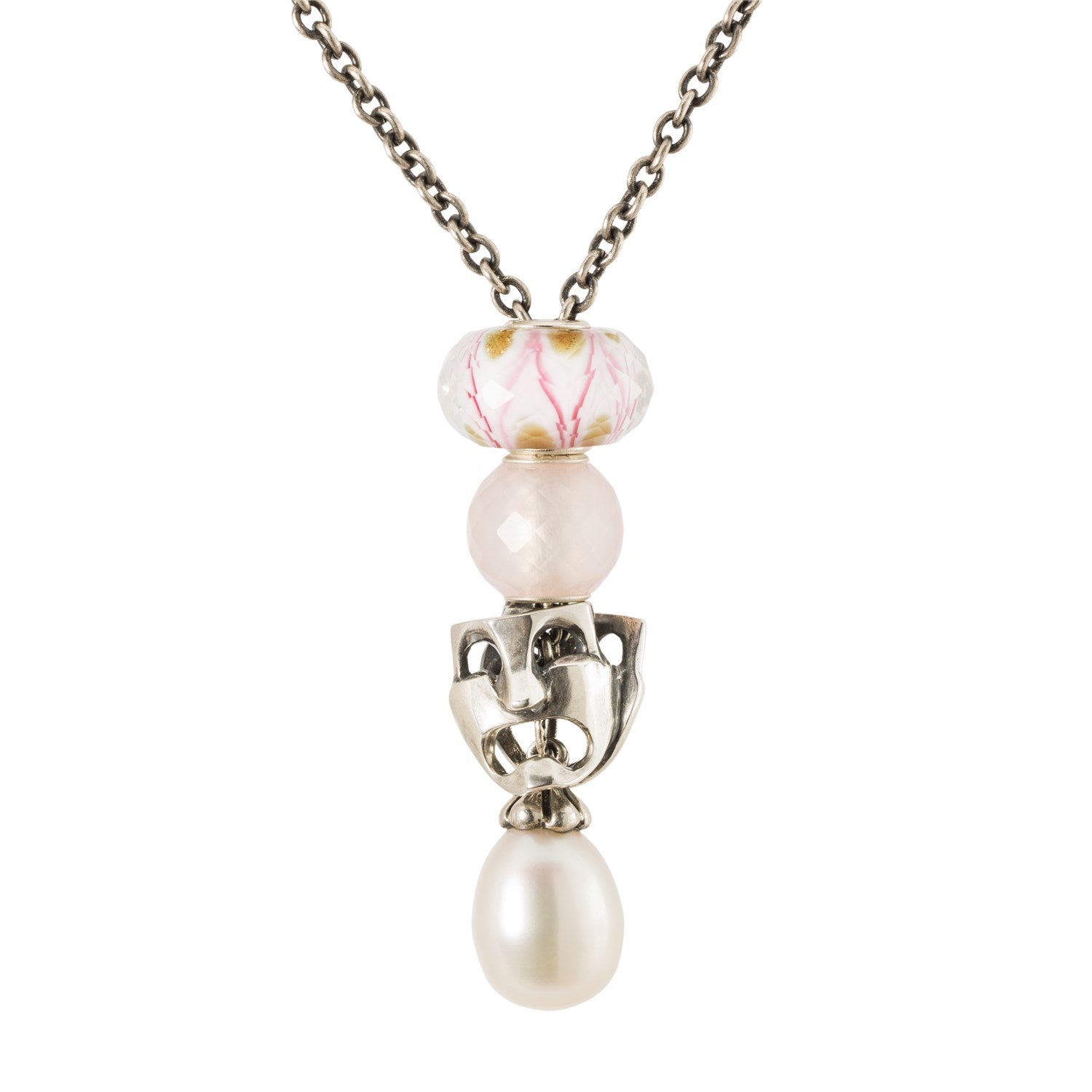 Two masks – one laughing and one frowning – make up this theatrical sterling silver bead.